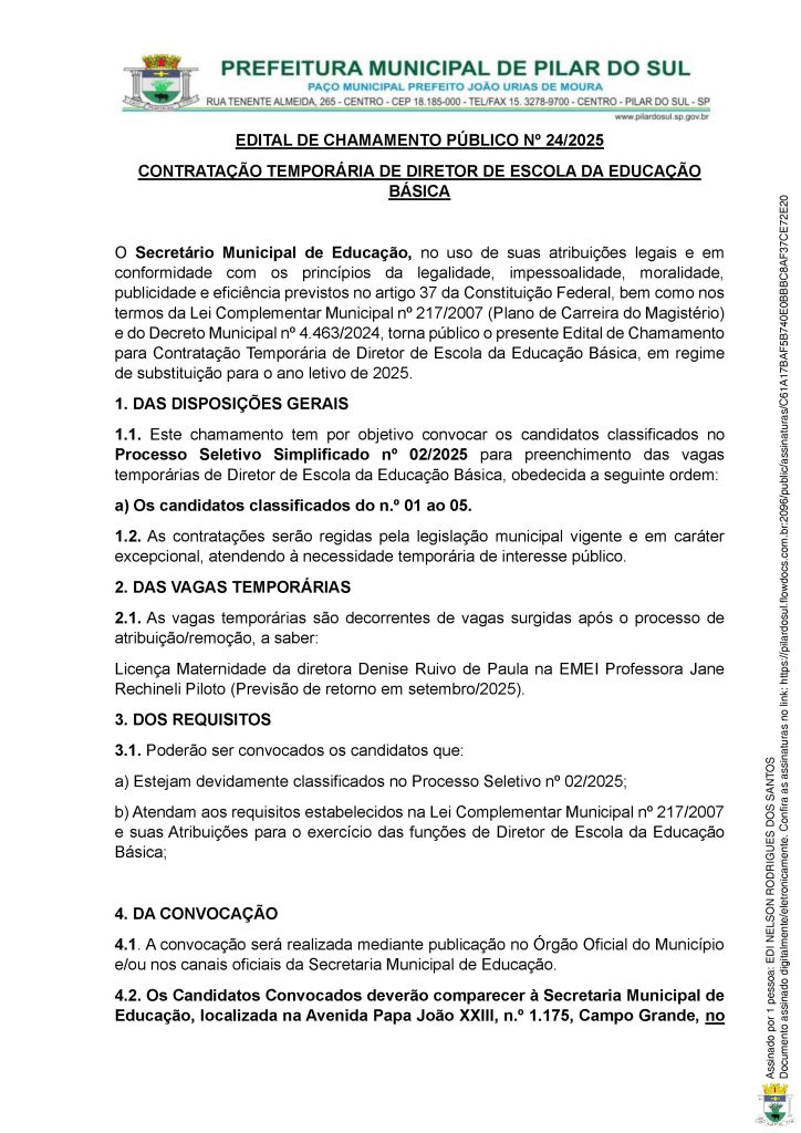 Edital de Chamamento Público 24/2025