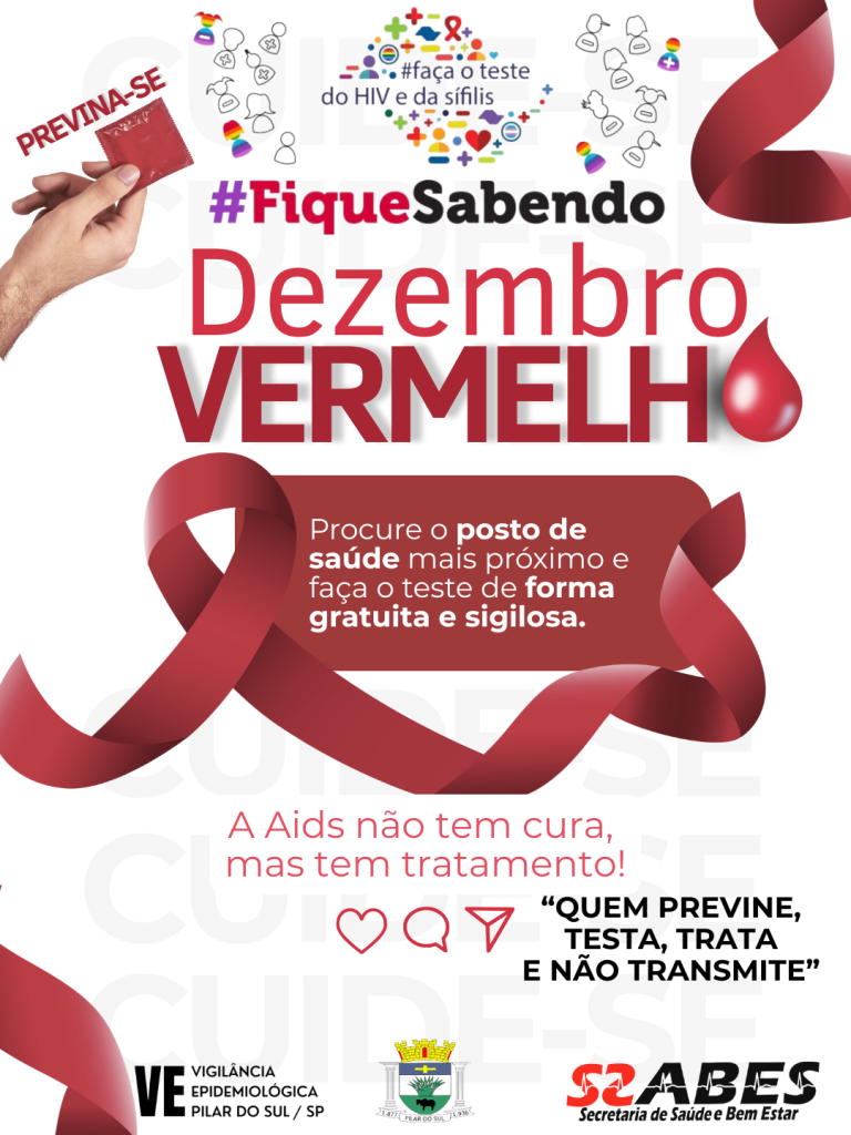 A Secretaria Municipal de Saúde, por meio da Vigilância Epidemiológica, realiza a Campanha Fique Sabendo, para testagem do HIV, Sífilis, Hepatite B e Hepatite C, no período de 01 ao dia 15 de dezembro de 2025 em todos os Postos de Saúde.
