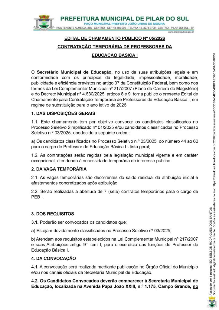 EDITAL DE CHAMAMENTO PÚBLICO Nº 05/2026