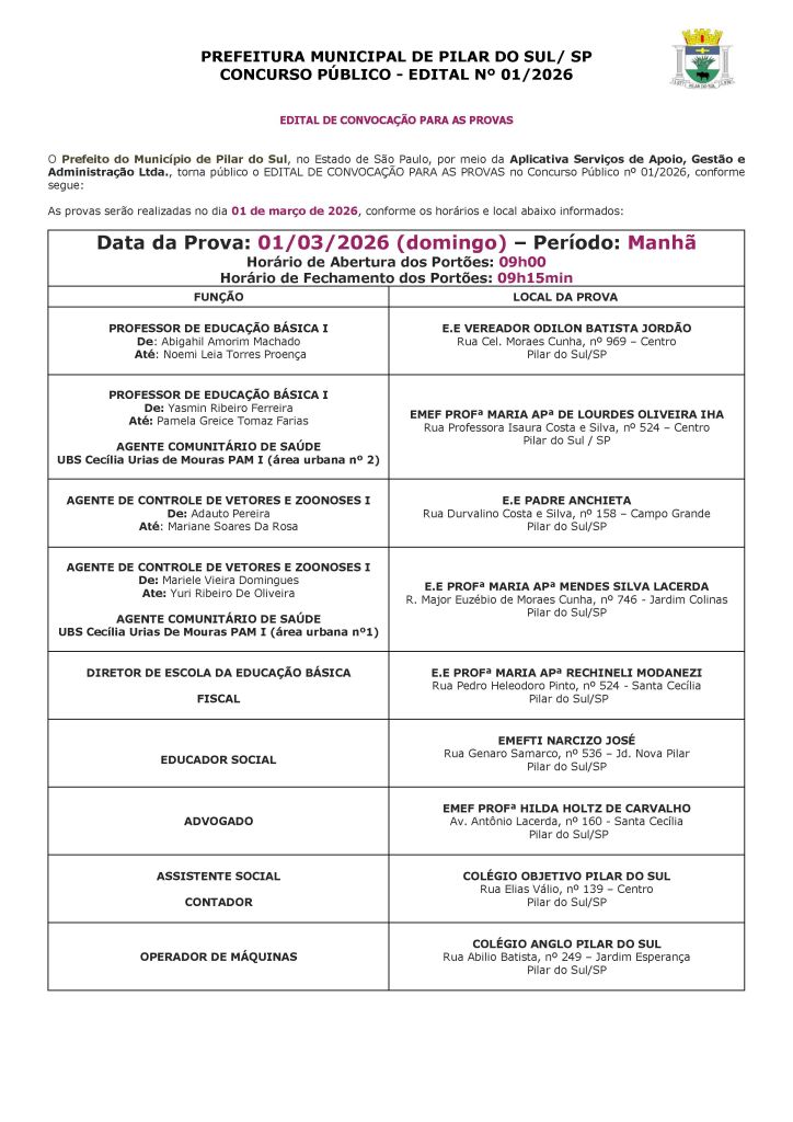 EDITAL DE CONVOCAÇÃO PARA AS PROVAS