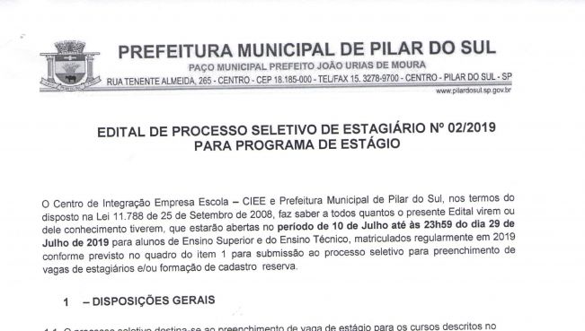 Edital de Processo Seletivo de Estagirio N 02/2019 para Programa de Estagio