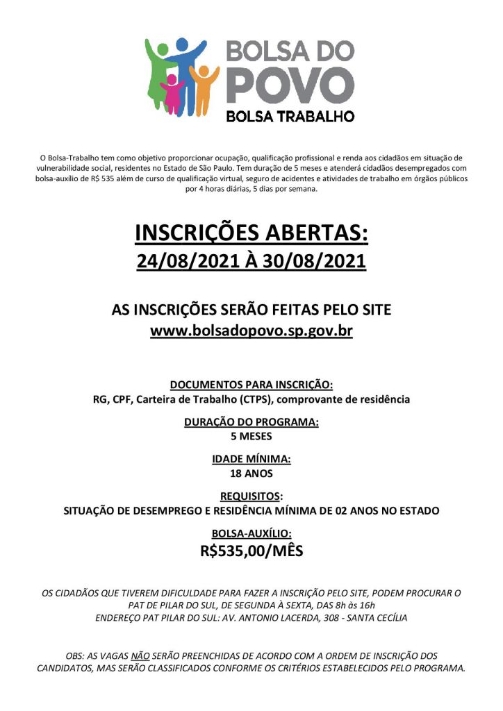 Bolsa Trabalho Inscrições Abertas