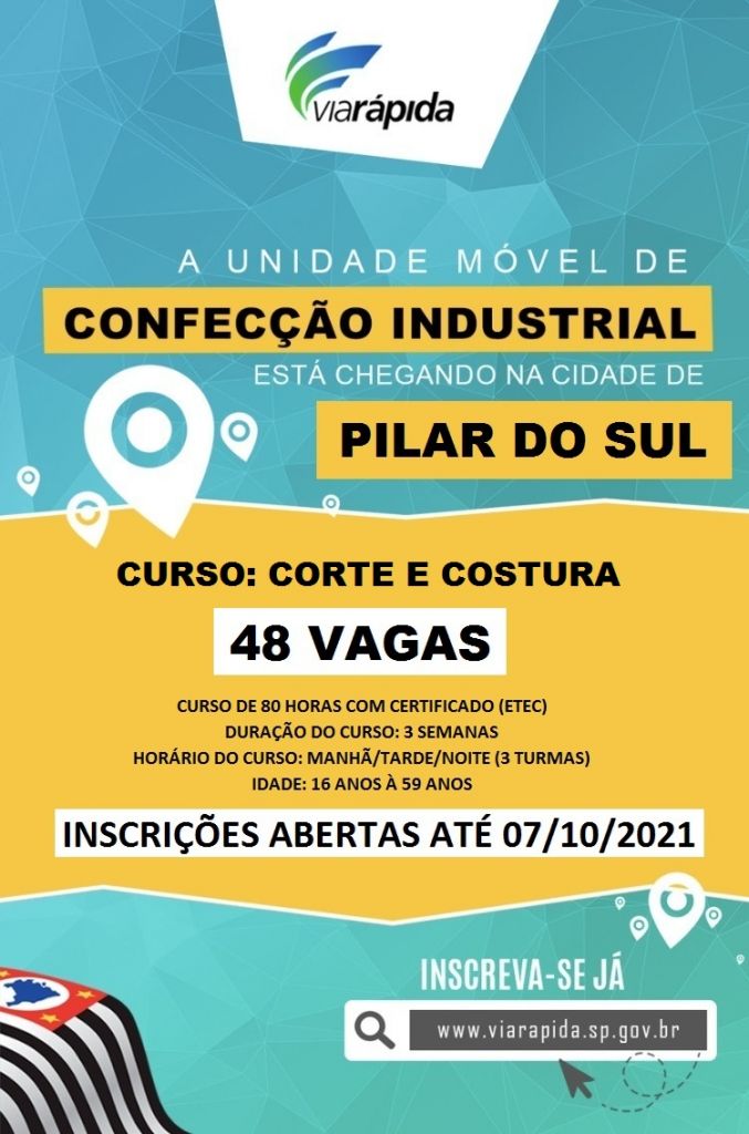 CURSO VIA RÁPIDA EM PILAR DO SUL(CORTE E COSTURA)