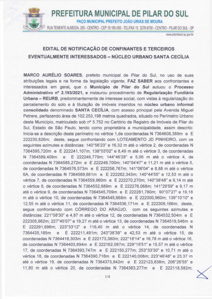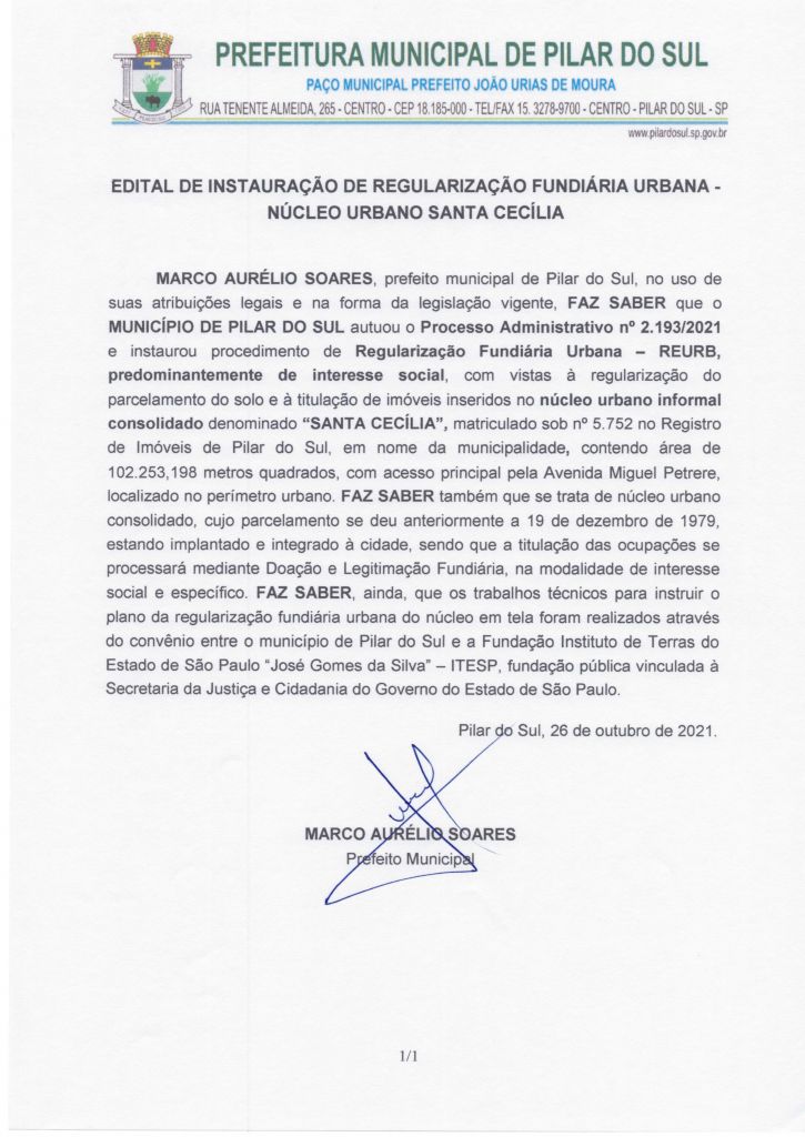 EDITAL DE INSTAURAÇÃO DE REGULARIZAÇÃO FUNDIÁRIA URBANA