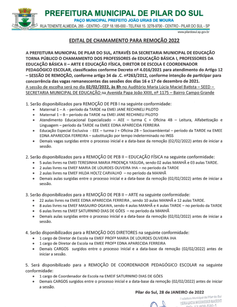 Edital de Chamamento Público e Remoção 01/2022 - SEED