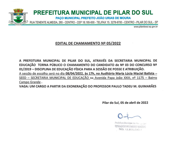 EDITAL DE CHAMAMENTO PÚBLICO Nº 05/2022