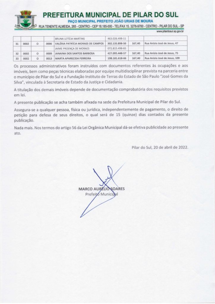 EDITAL DE TITULAÇÃO DE IMÓVEIS URBANOS