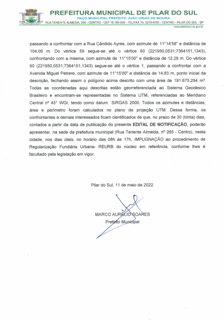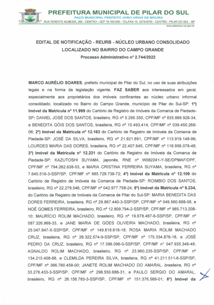 EDITAL DE NOTIFICAÇÃO REGULARIZAÇÃO FUNDIÁRIA URBANA
