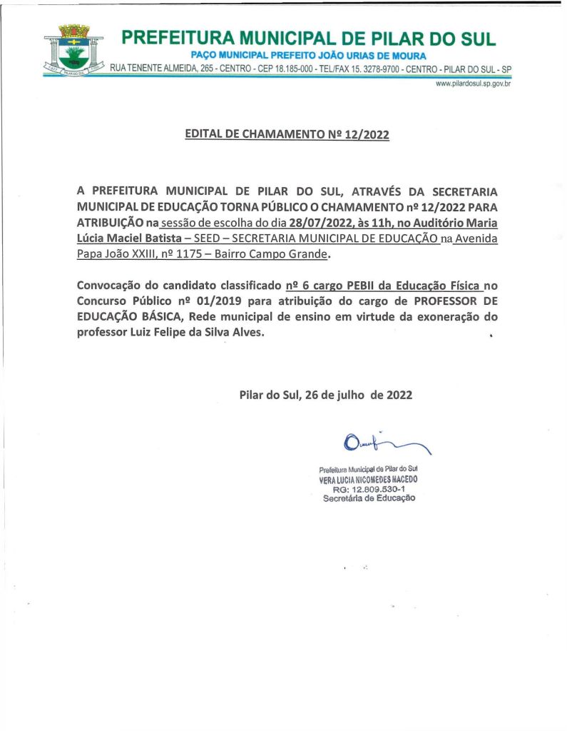 Edital de Chamamento Público 12/2022