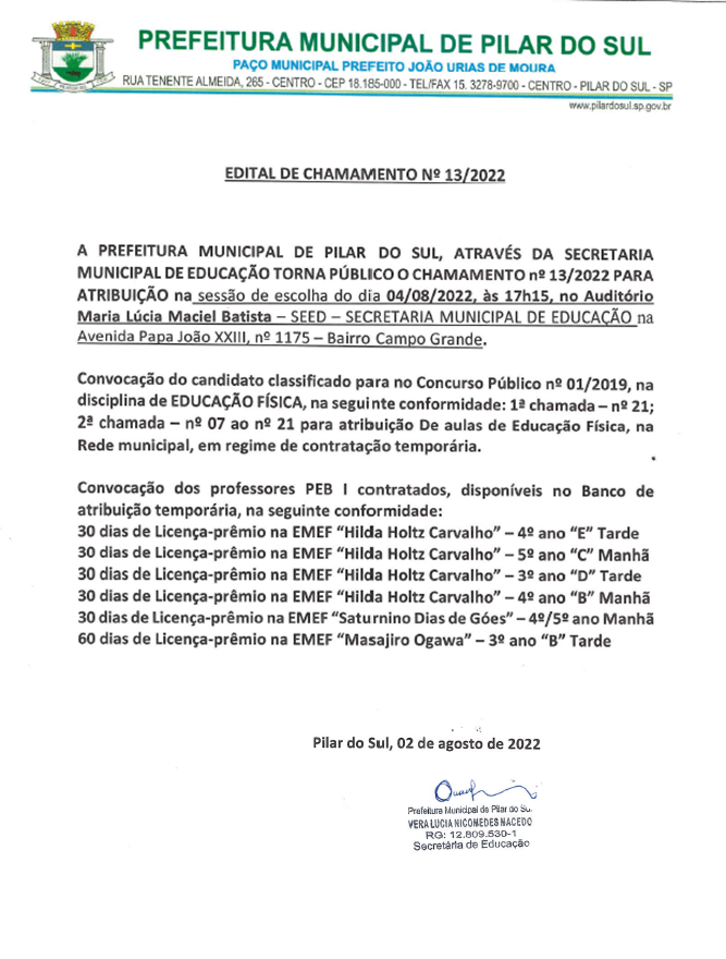 EDITAL DE CHAMAMENTO PÚBLICO 13/2022