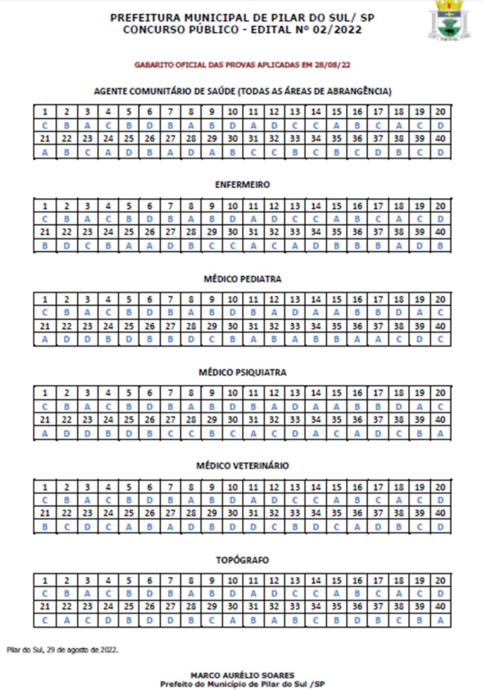 Gabarito Oficial das Provas Aplicadas em 28/08/2022