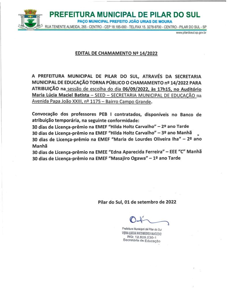Edital de chamamento Público Nº 14/2022