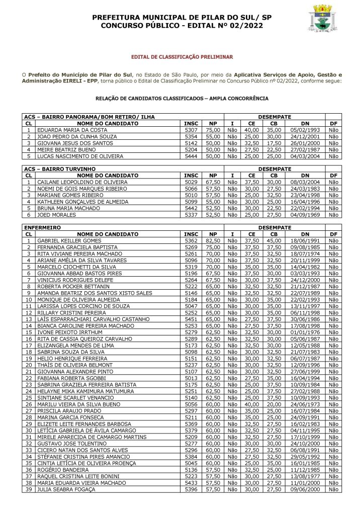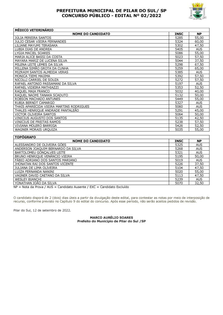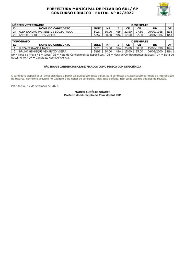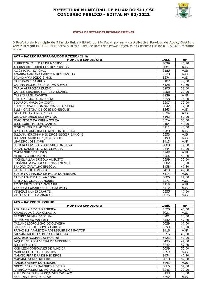 EDITAL DE NOTAS/GABARITO E CLASSIFICAÇÃO PRELIMINAR DAS PROVAS OBJETIVAS CONCURSO 02/2022
