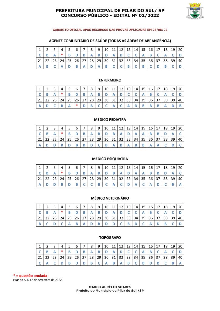 Gabarito Oficial após Recursos das Provas Aplicadas 28/08/2022