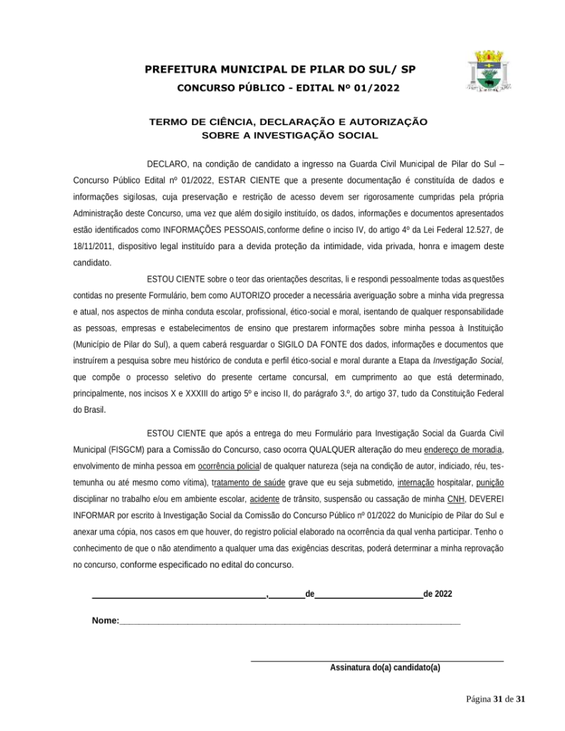 Concurso 01/2022 GUARDA CÍVIL MUNICIPAL