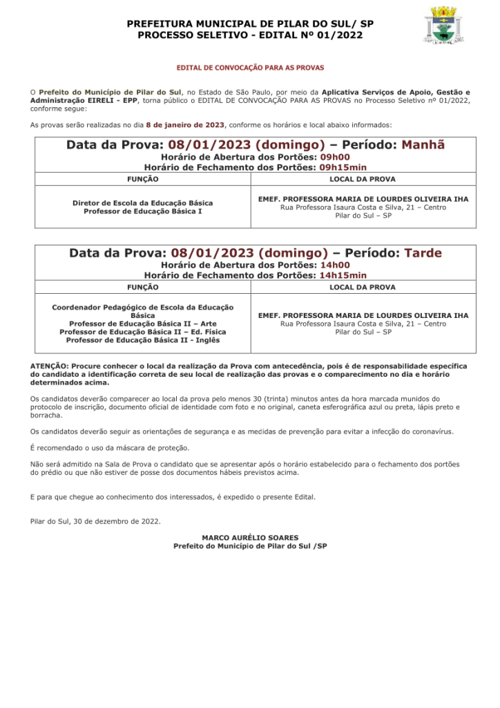 PROCESSO SELETIVO - EDITAL Nº 01/2022