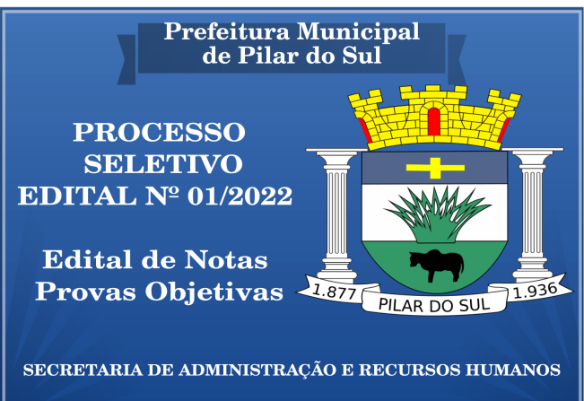 O Prefeito do Município de Pilar do Sul, no Estado de São Paulo, por meio da Aplicativa Serviços de Apoio, Gestão e Administração EIRELI - EPP, torna público o Edital de Notas das Provas Objetivas no Processo Seletivo nº 01/2022, conforme segue: