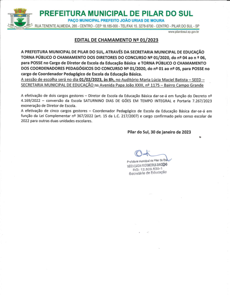 Prefeitura Municipal de Pilar do Sul - SP.