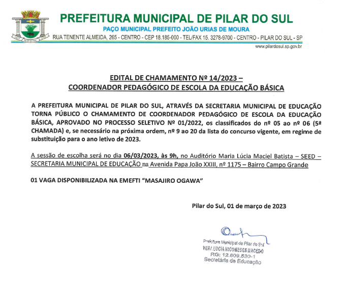 Prefeitura Municipal de Pilar do Sul - SP.
