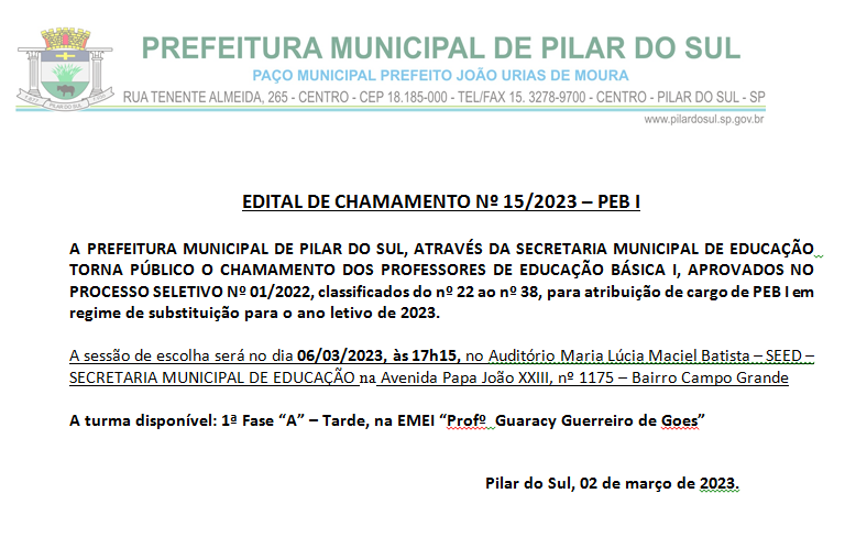 EDITAL DE CHAMAMENTO PÚBLICO N° 15/2023