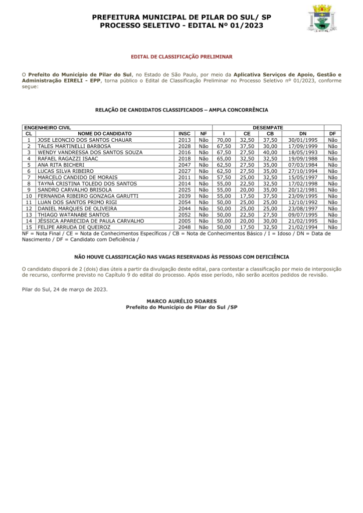 PROCESSO SELETIVO - EDITAL Nº 01/2023 (Engenheiro(a))