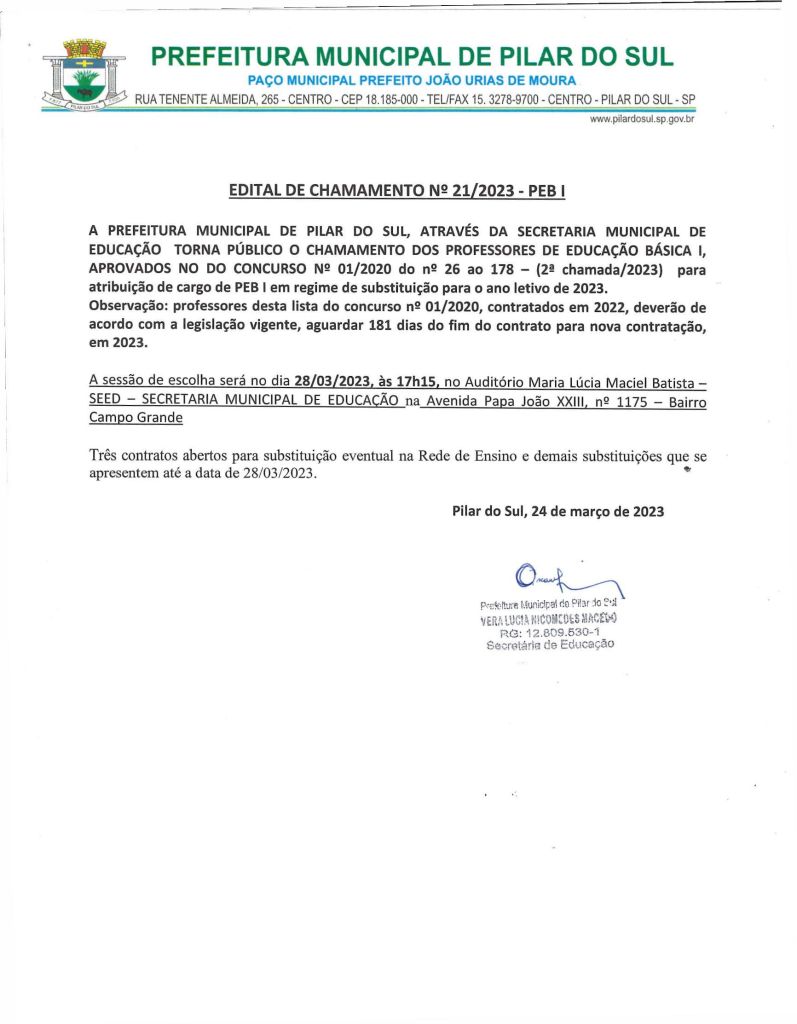 Edital de Chamamento Público n° 21/2023