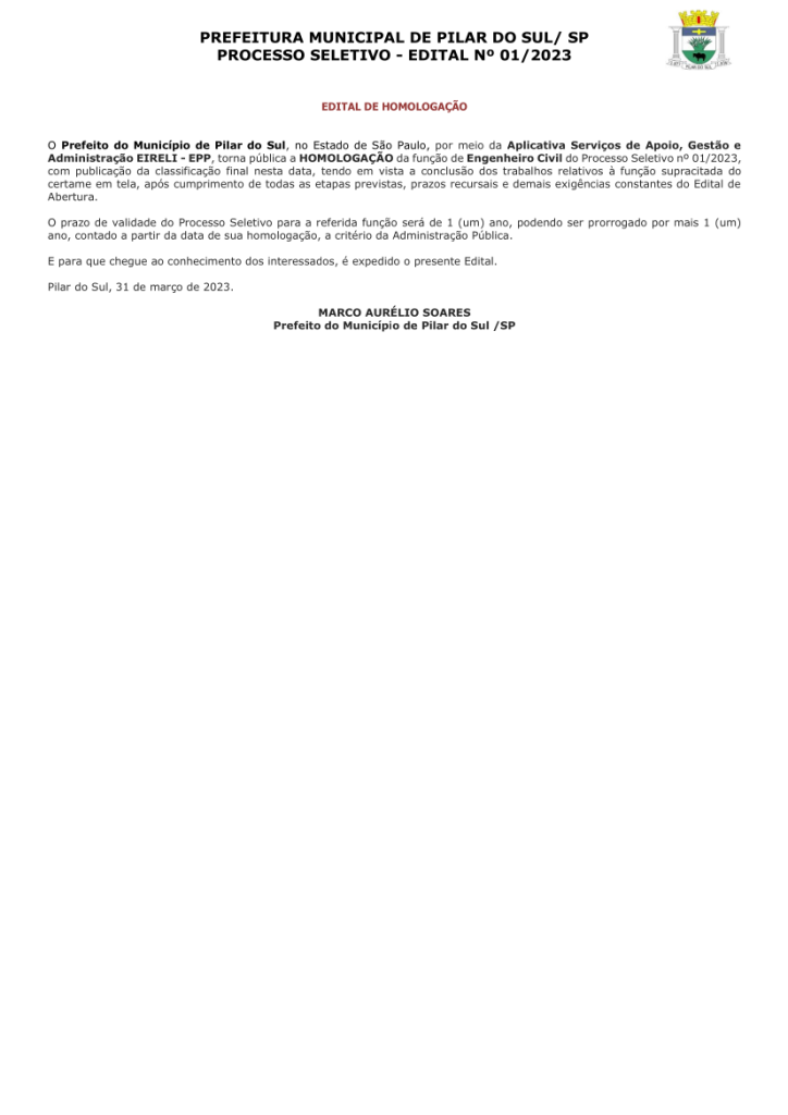 PROCESSO SELETIVO - EDITAL Nº 01/2023 (Engenheiro(a))