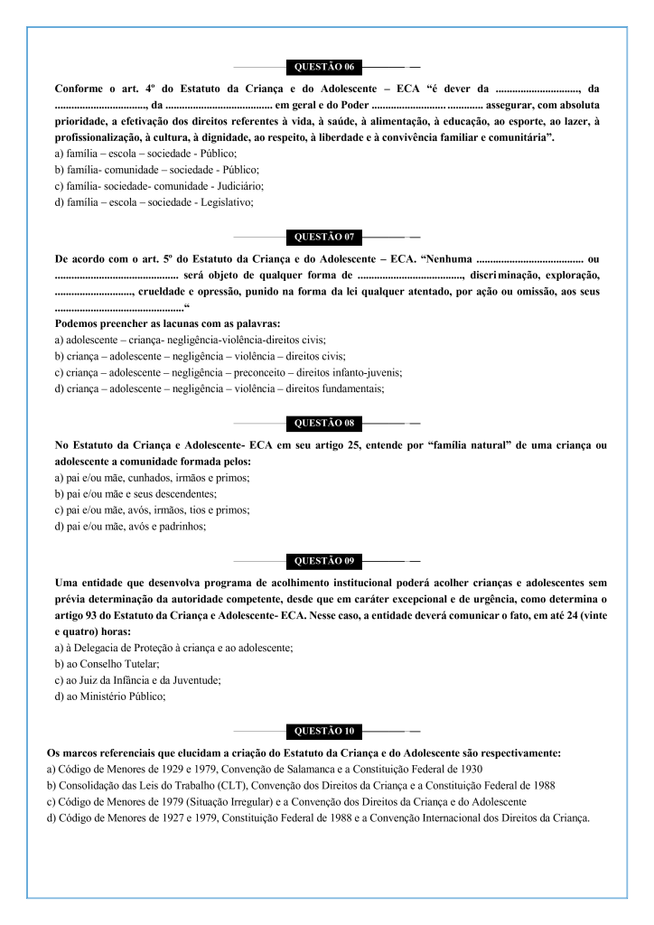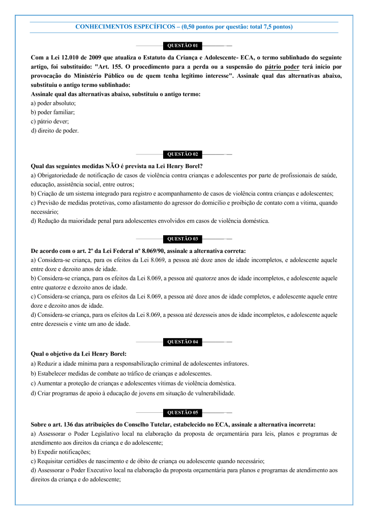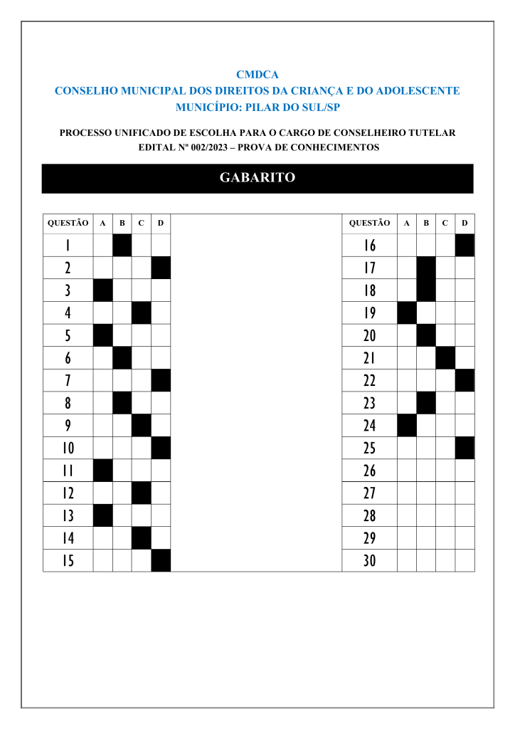 Prova, Gabarito e Resultado da Prova Conselheiro Tutelar