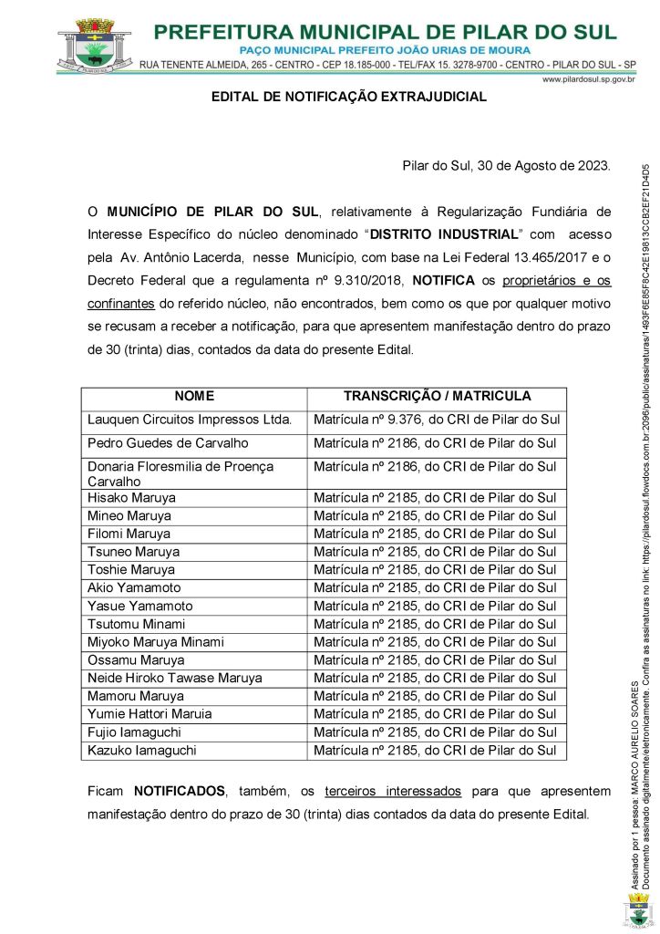 EDITAL DE NOTIFICAÇÃO EXTRAJUDICIAL