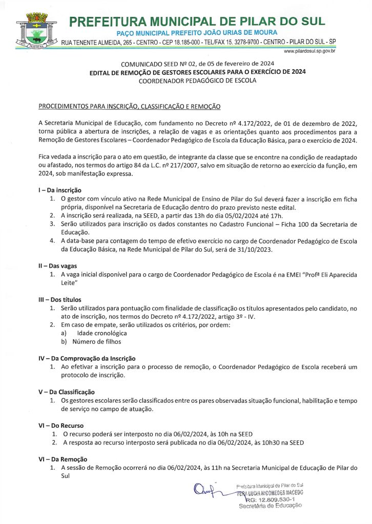 Educação - Segunda-feira, 05 de Fevereiro de 2024