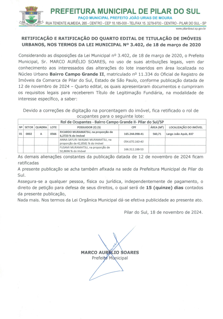 Retificação e Ratificação do Quarto Edital - Campo Grande