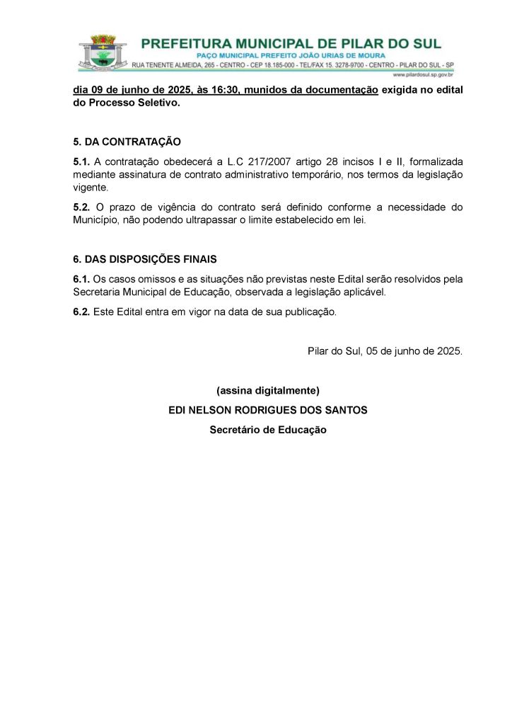 CONTRATAÇÃO TEMPORÁRIA DE PROFESSORES DA EDUCAÇÃO BÁSICA I