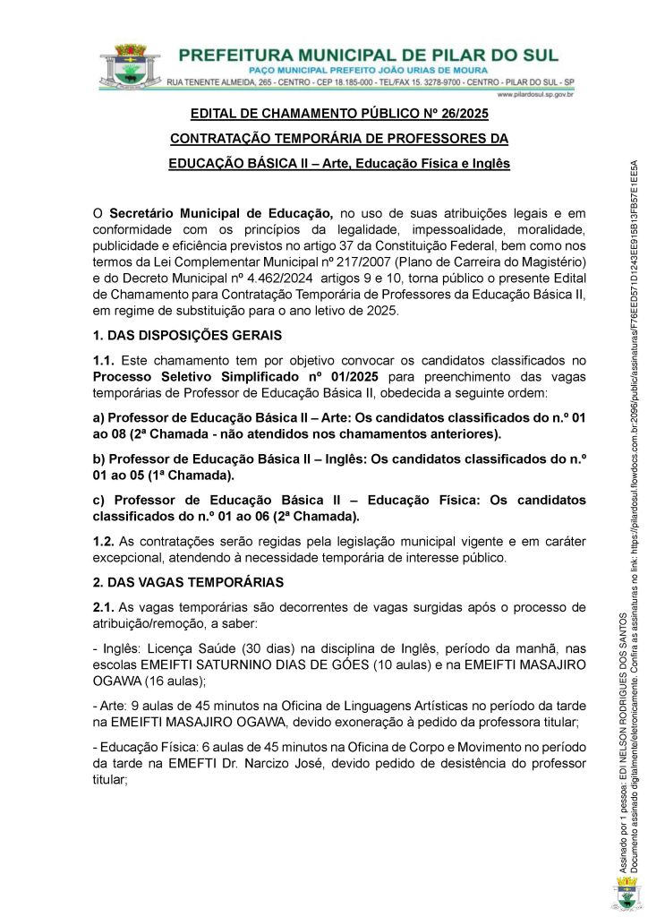 EDITAL DE CHAMAMENTO PÚBLICO Nº 26/2025