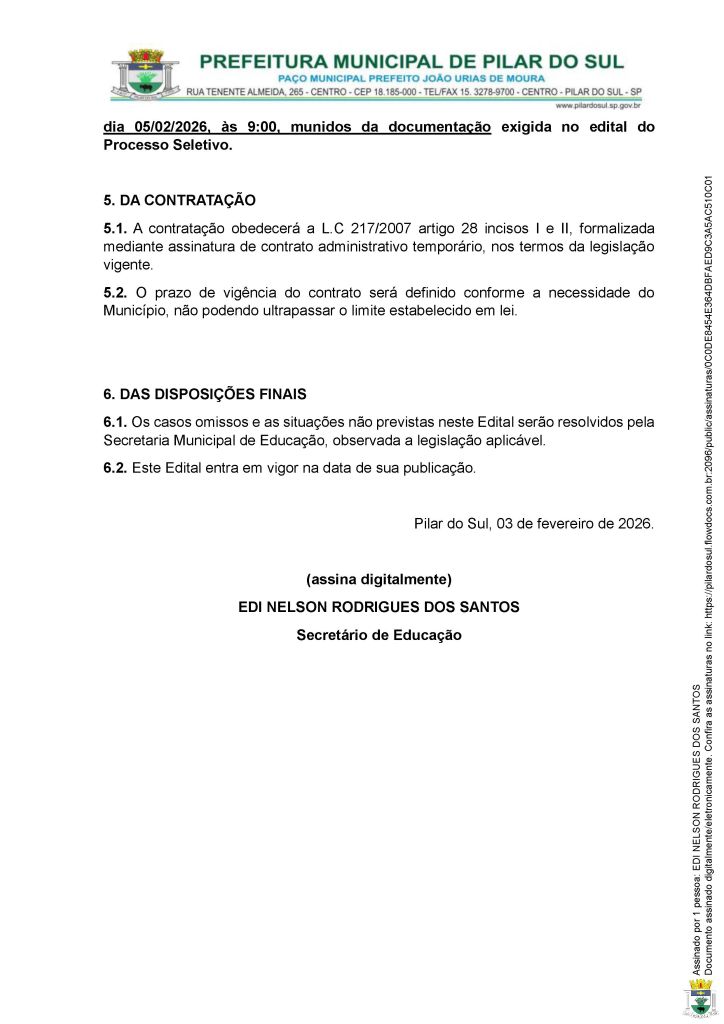 EDITAL DE CHAMAMENTO PÚBLICO Nº 05/2026