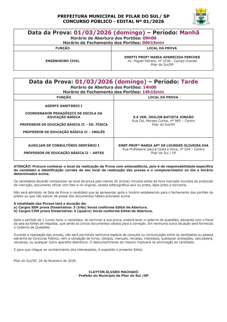 EDITAL DE CONVOCAÇÃO PARA AS PROVAS
